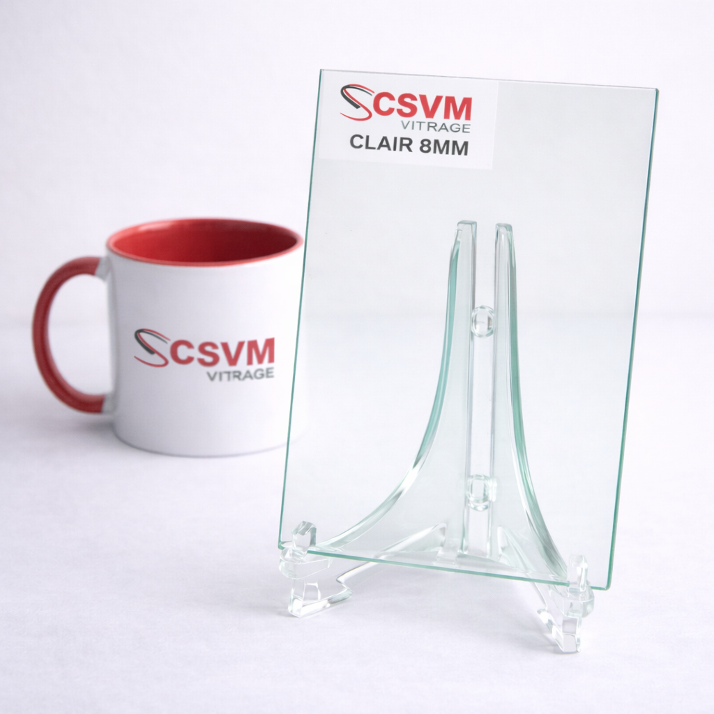 Le verre clair est le verre de référence. D’abors Il est produit par le procédé ‘float’ sans ajout de couleur.  Par conséquents les deux faces sont lisses et parallèles. Ensuite Il se prête à tout usage. Verre simple, double vitrage isolant, verre feuilleté, verre trempé securit, verre émaillé, verre laqué, verre sablé, verre maté à l’acide.