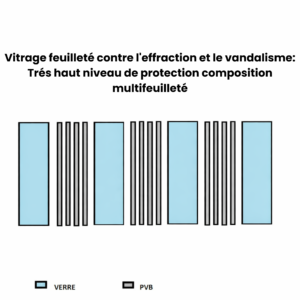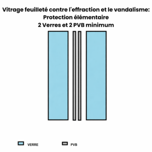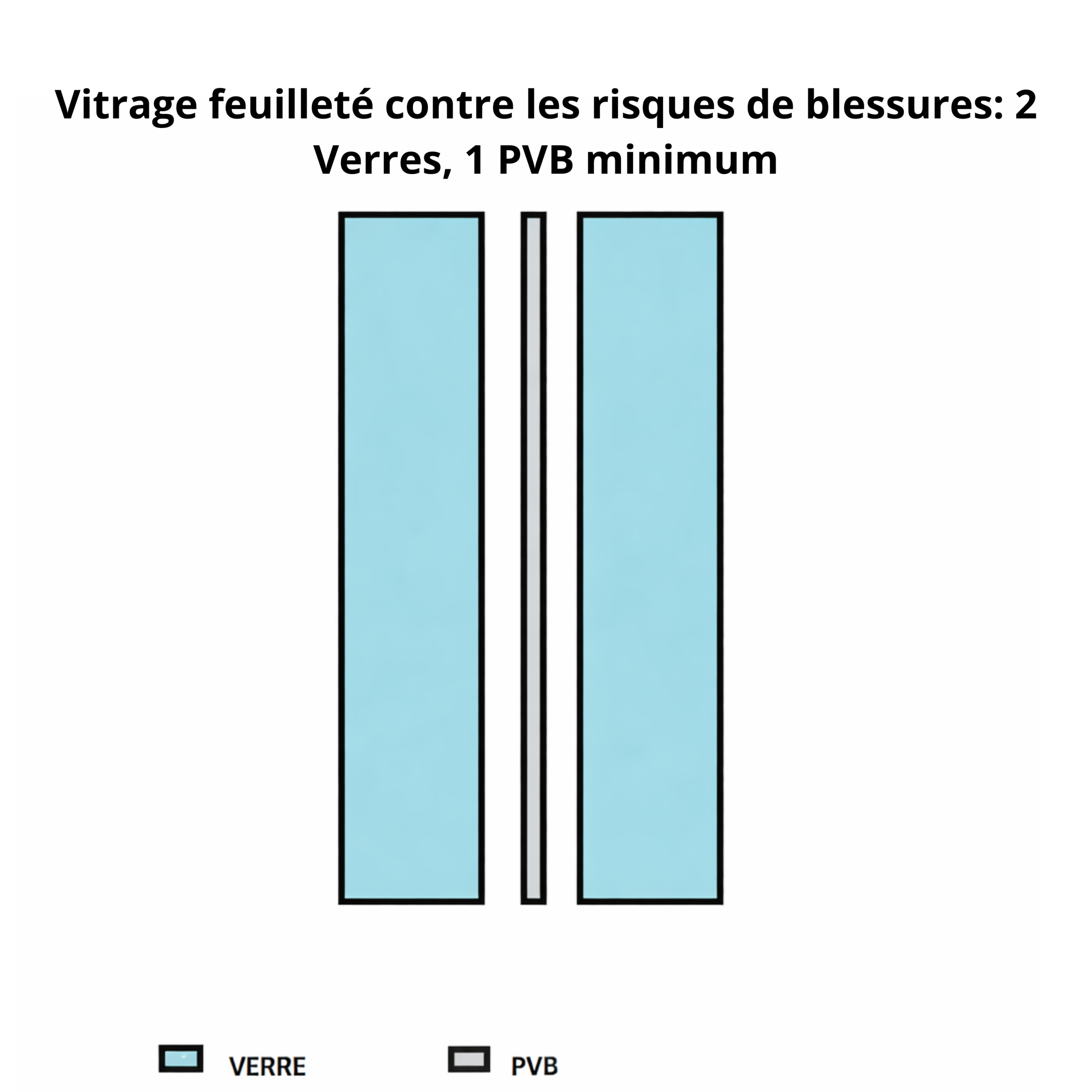 Le Vitrage feuilleté contre les risques de blessures est le verre feuilleté de base. Il est composé de deux verres et 1 film PVB minimum..