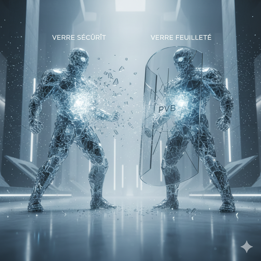 Deux technologies dominent : le verre trempé (Sécurit) et le verre feuilleté (type PVB ou EVA).